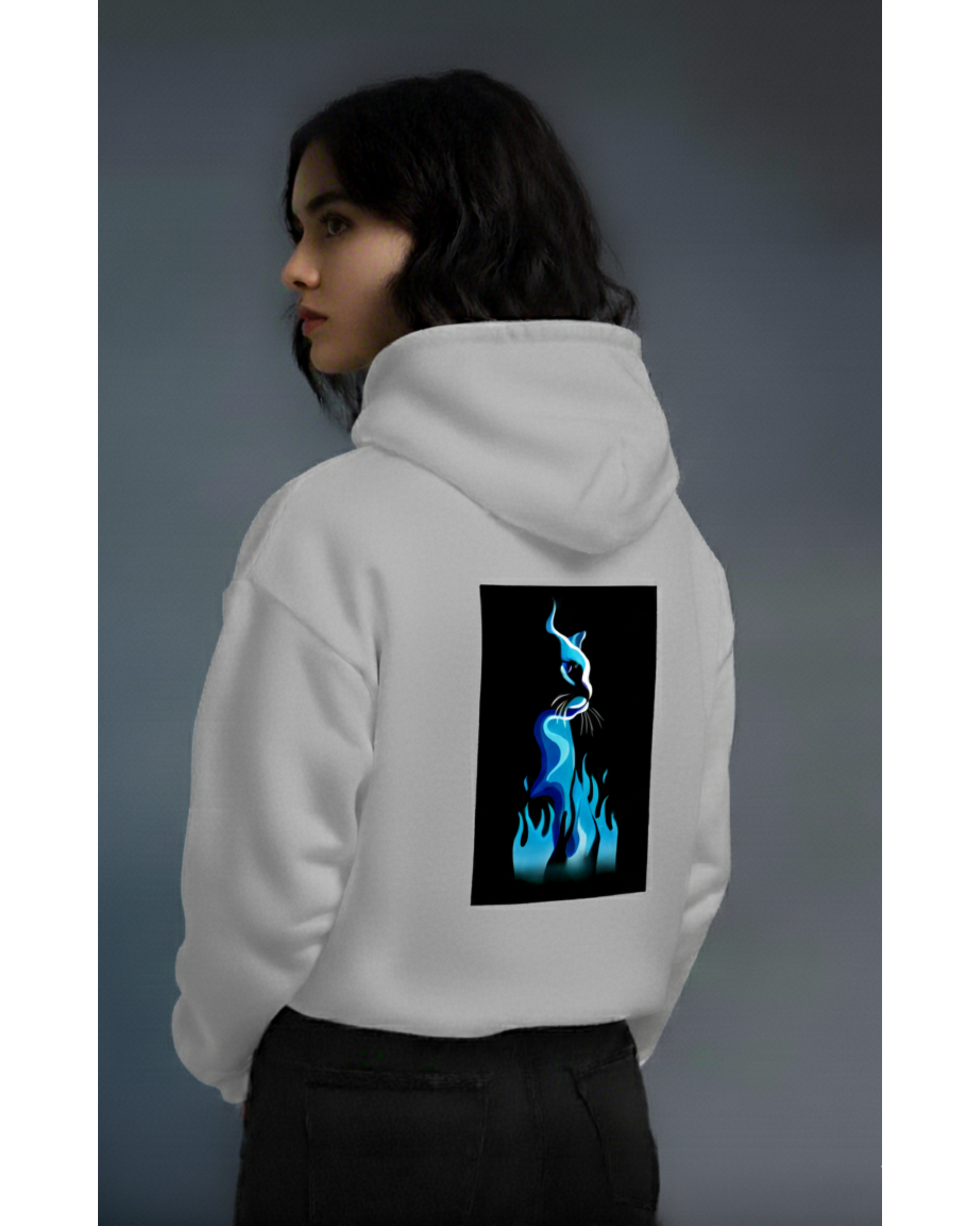 Osirius "SpiritFire" Hoodie – Blue Flame Cat Design